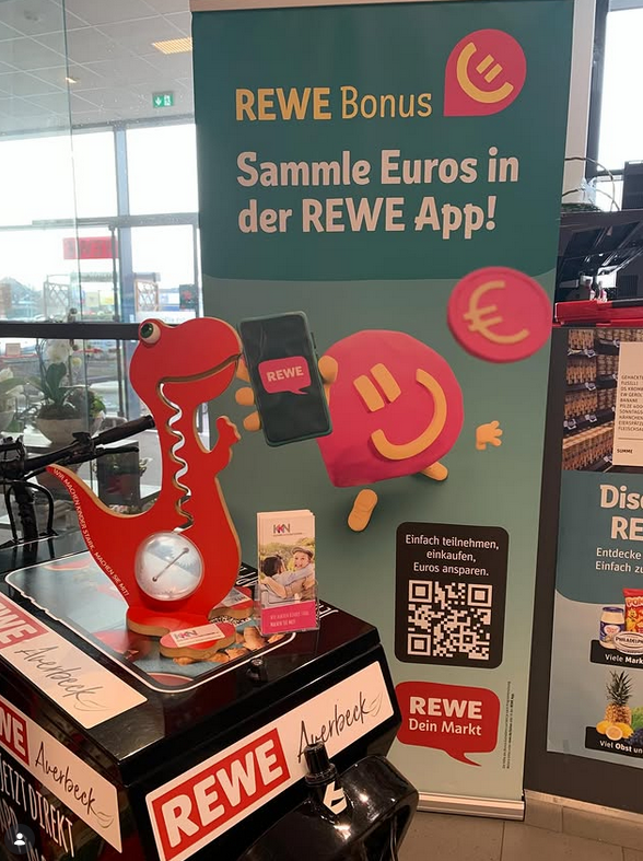 Unser Spenden-Dino steht jetzt bei REWE Averbeck in Kranenburg!