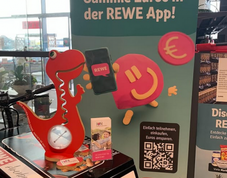 Unser Spenden-Dino steht jetzt bei REWE Averbeck in Kranenburg!